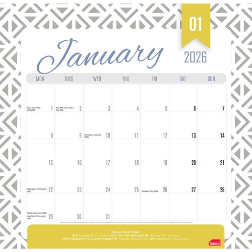 SASCO MAGNETIC CALENDAR Month To View 325X315Mm Assorted