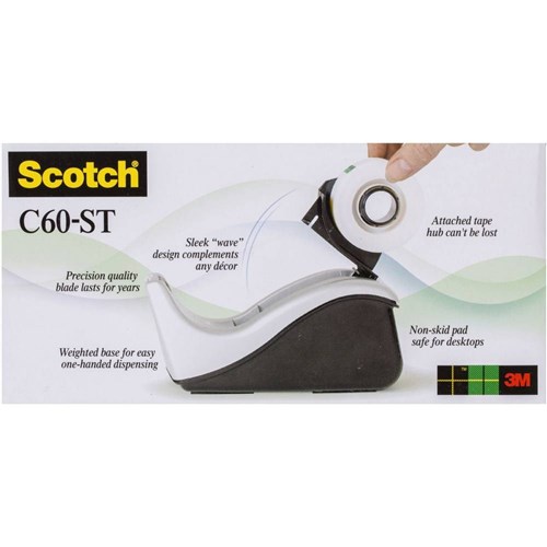 Scotch C60-ST Tape Dispenser Desktop Small 30mm Core No Tape Black & Silver