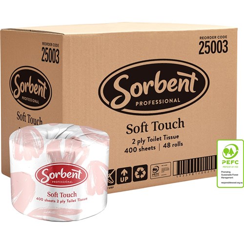 Sorbent Professional Soft Touch Toilet Tissue 2 Ply 400 Sheets Carton Of 48