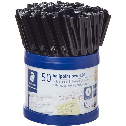 Staedtler 430 Stick Ballpoint Pens Medium 1mm Black Cup of 50