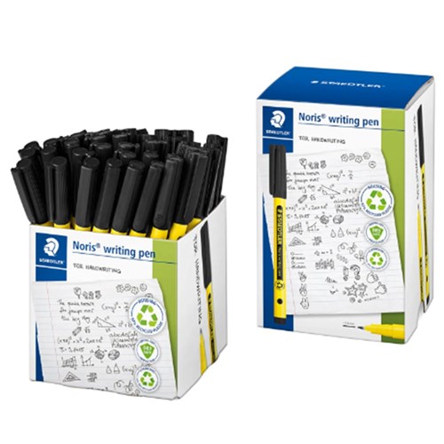 • The cup of 50 Noris writing pen in black has been designed with a pressure resistant tip an ideal fineliner for school.