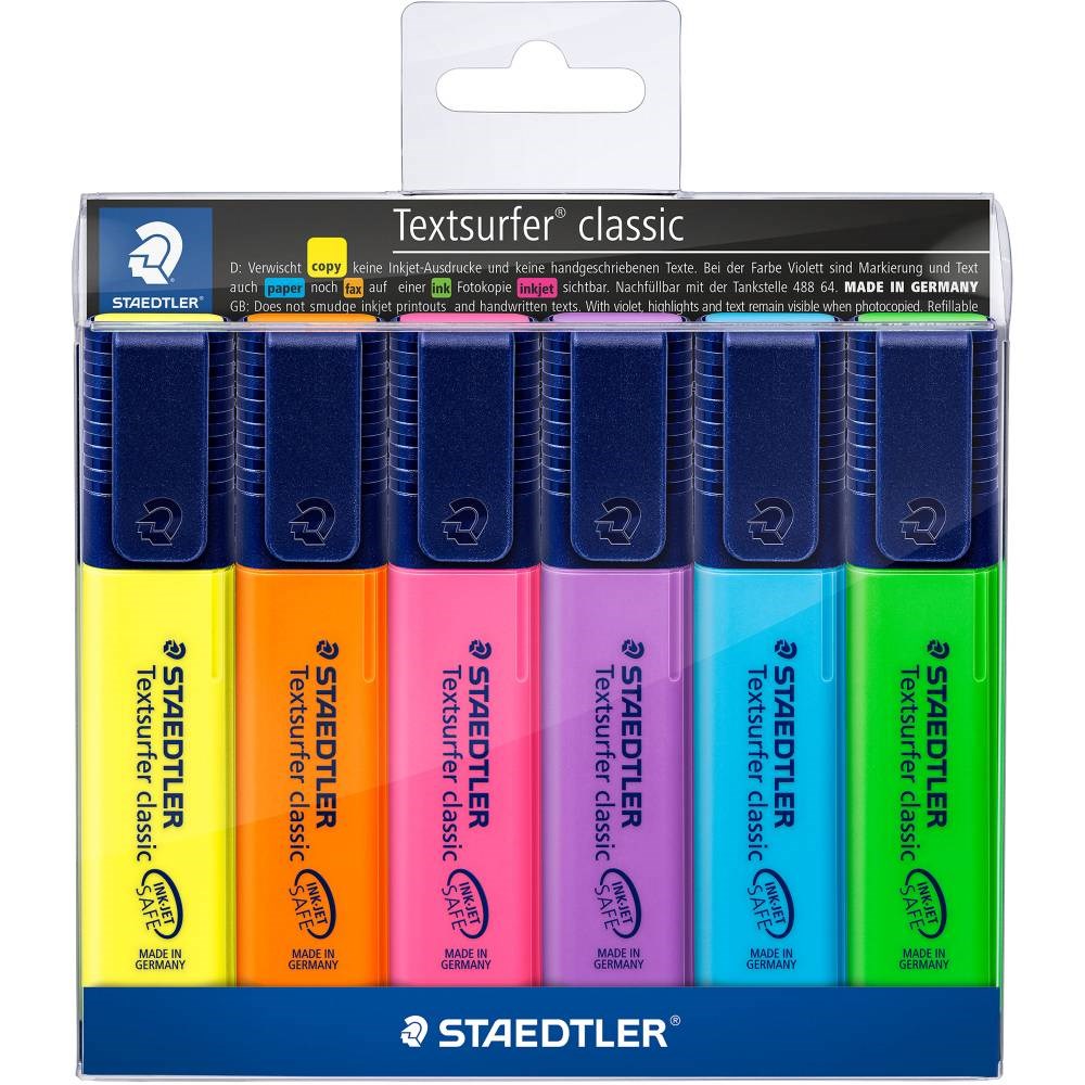Staedtler Textsurfer Classic Highlighters Chisel 1-5mm Assorted Colours Wallet Of 6
