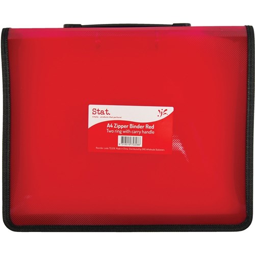 Stat A4 2R Zipper Binder with Handle 25mm Red