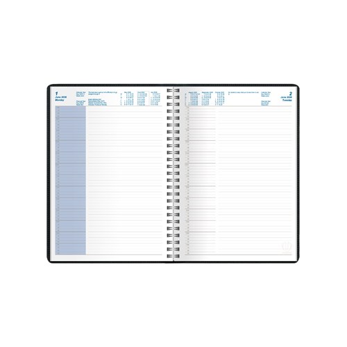 • Featuring a padded, phthalate free, PVC cover, pockets for storing business cards and wire-o binding to allow the diary to lie completely flat when open.