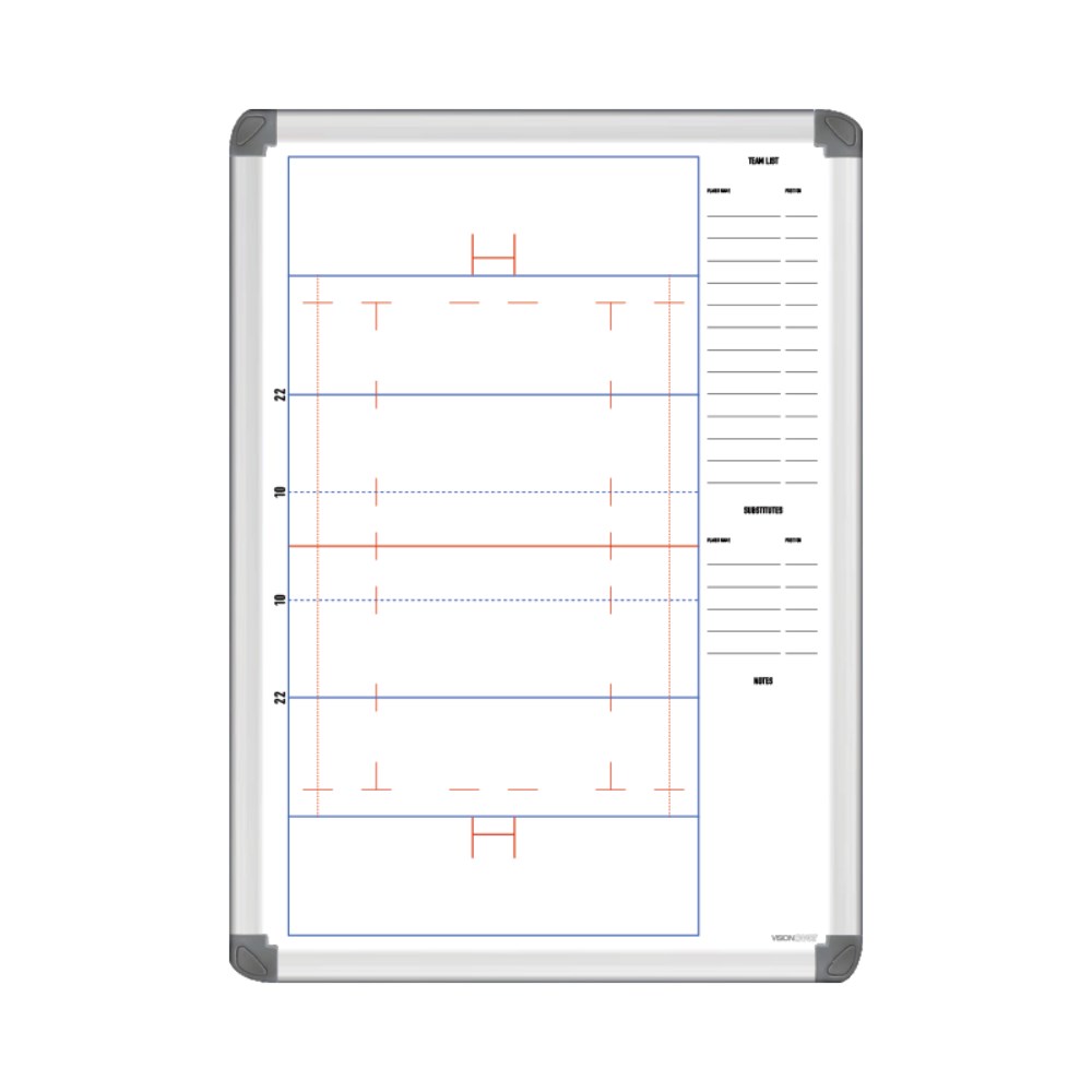 Visionchart Coaches Tactical Whiteboard 600 x 400mm Rugby Union Aluminium Frame