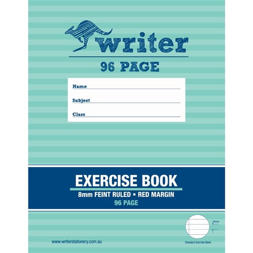 Writer Exercise Book 225 x 175mm 96 Page 8mm Ruled Red Margin