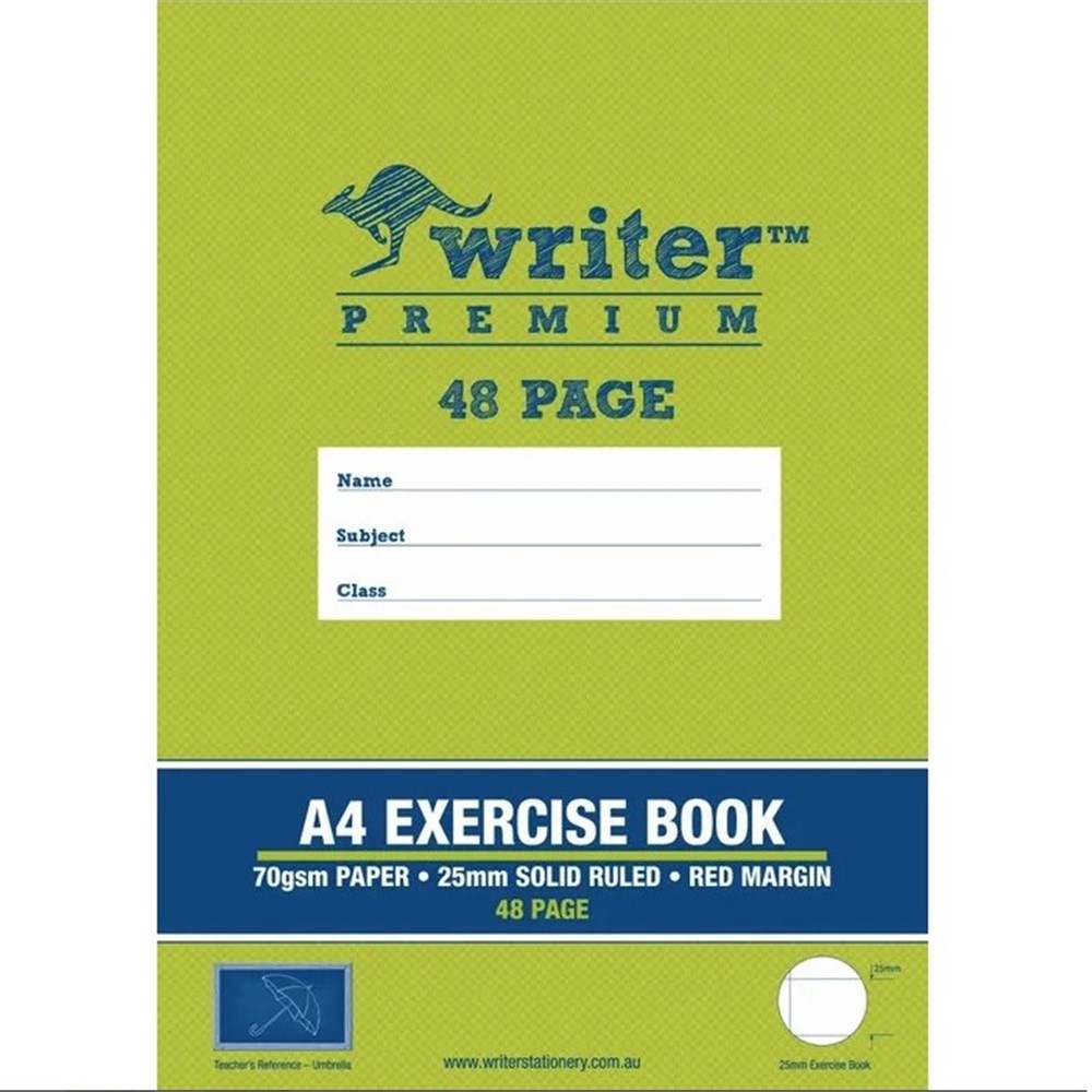 WRITER PREMIUM EXERCISE BOOK A4 48pg 25mm solid ruled + margin Umbrella