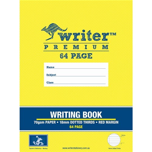 • Writer Premium Writing Books feature heavy duty covers, high quality white 70gsm paper with blue Dotted Thirds ruled lines and a red margin