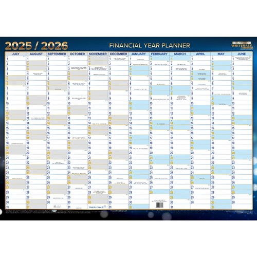 Writeraze Financial Year Wall Planner 500 x 700mm Blue